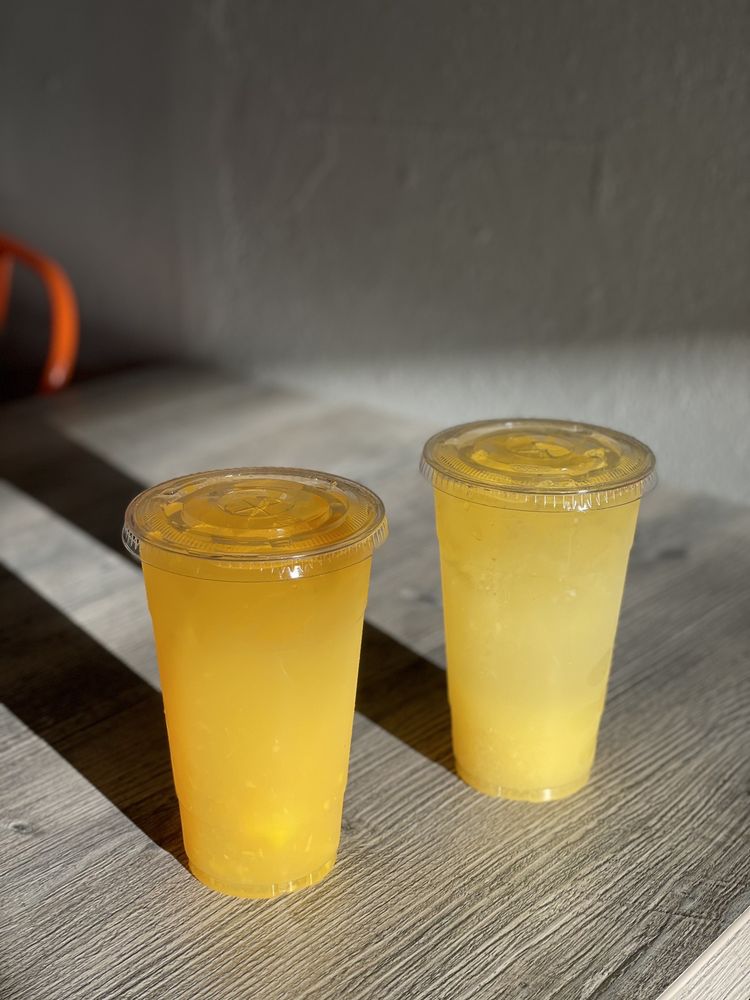 Pineapple agua fresca with optional medium or large size. Choose no ice, light ice, or extra ice.